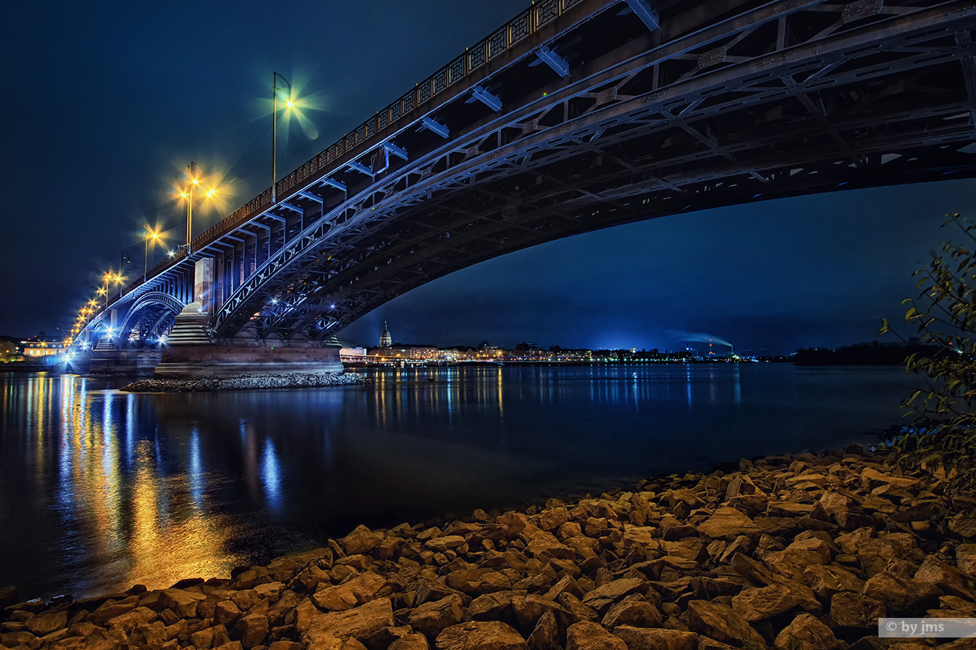- Brücke, Deutschland, Fluß, HDR, Mainz-Kastel, Nachts