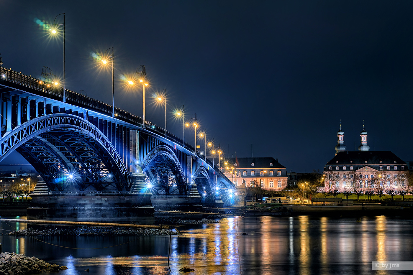 - Brücke, Deutschland, Fluß, HDR, Mainz-Kastel, Nachts